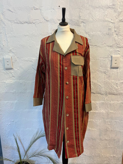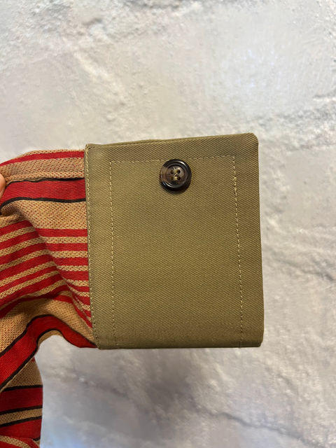 A Safari High-Waist Trouser, inspired by the brand’s aesthetic and the challenging Namibian climate. Designed to accommodate the region’s unpredictable temperatures, the trouser features a functional clip design, allowing it to be worn clipped up on both sides for warmer weather or clipped down when cooler. This piece was designed to be made using the brand’s signature Odelela fabric, which we hand-dyed ourselves—a meticulous process taking up to 36 hours—making each piece unique to the brand and embodying its commitment to authentic, handcrafted quality.